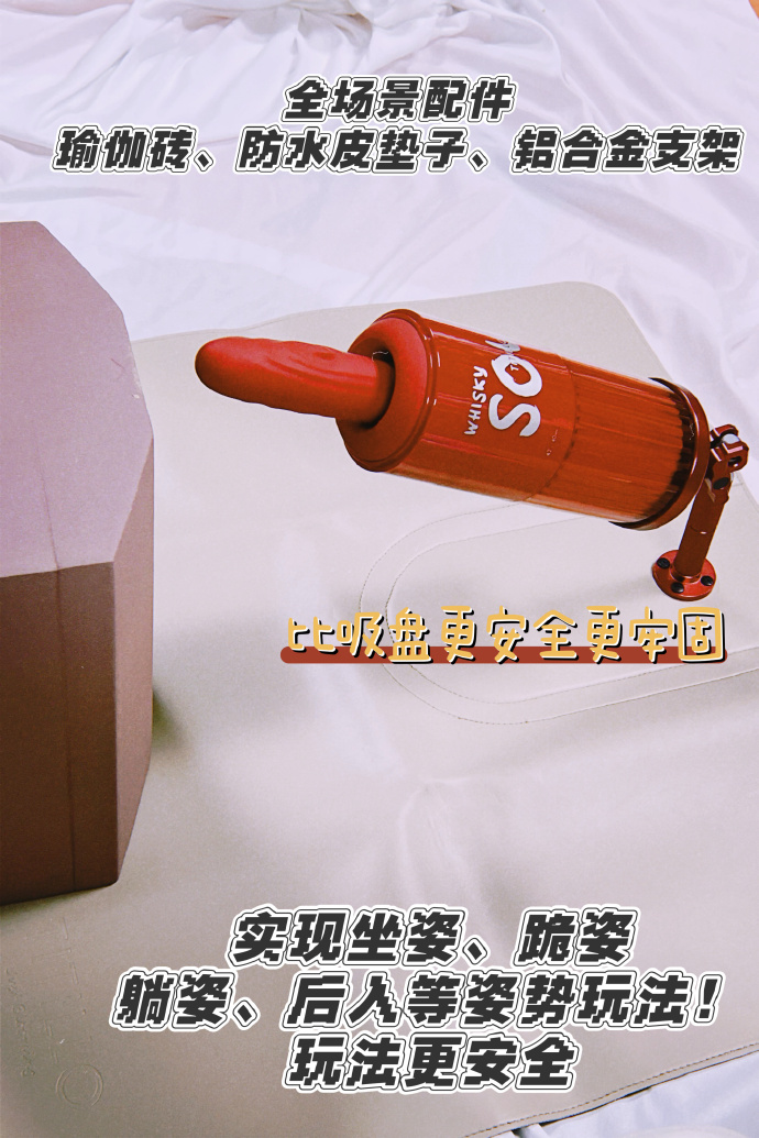 并且它家还搭配了一整套质感拉满的配件,满足各种花样play。✔️防水垫与支架相互配合,能够在各种场景下轻松使用。