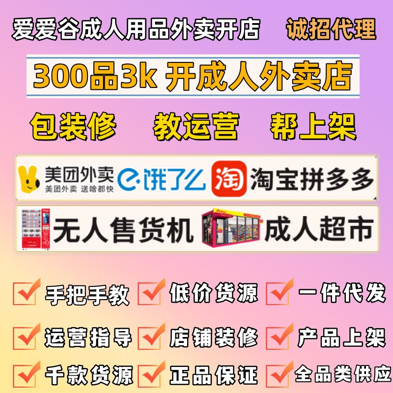 - 美团成人用品外卖加盟兼职开淘宝网店无人售货广州天喜健康管理有限公司(爱爱谷代理加盟)