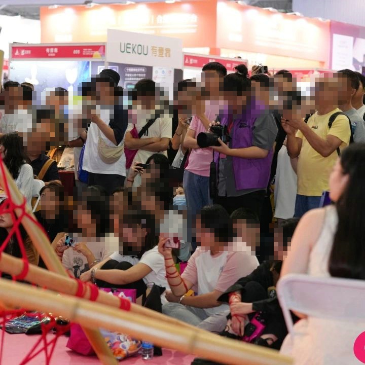众多年轻观众欣赏绳缚术表演