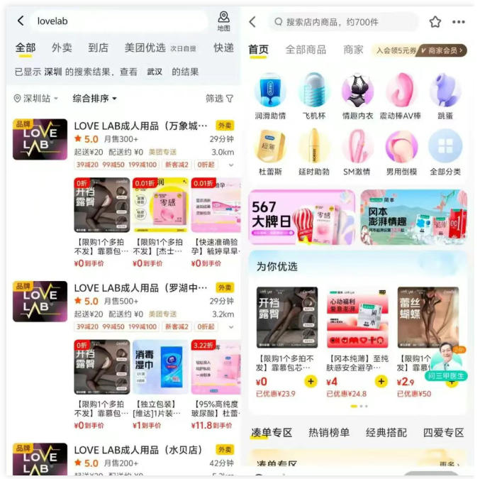 实际上,这并不是美团初次盯上成人赛道。据“噫小拾”了解,去年上半年,美团就孵化了自营的情趣无人仓“LOVELAB”,归属于美团买药旗下,只在深圳和广州试点。