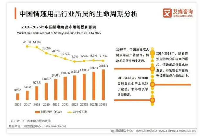 据“艾媒咨询”报告显示,国内情趣用品行业保持着稳定的增长速度,预计2025年市场规模能达到2081.3亿元。