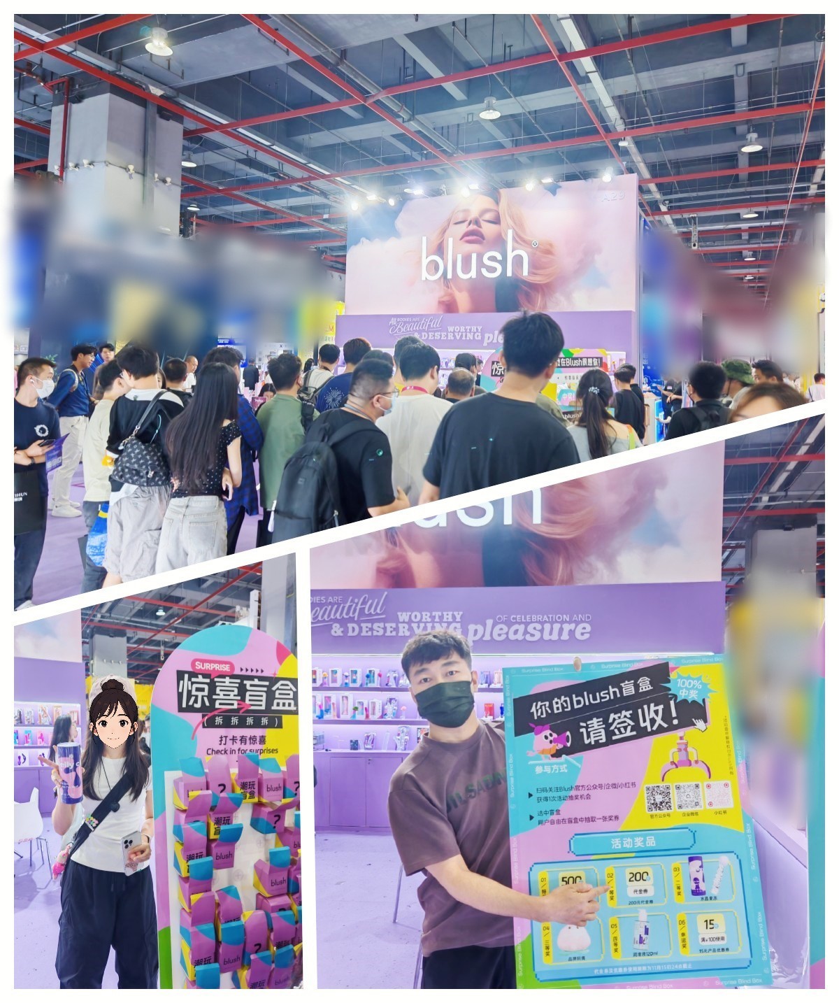 进一步提升互动体验,Blush展位还精心准备了盲盒抽奖活动,内含品牌定制周边、Sweet Me系列新品体验、线上礼物领取等惊喜好礼,吸引众多参观者排队参与,人气集聚。