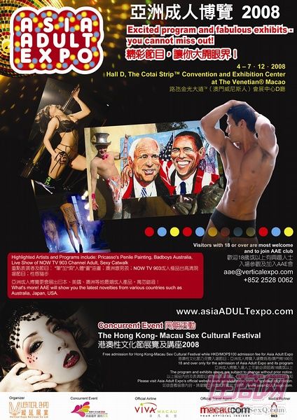 2008首届亚洲成人博览AAE于2008年12月4日至7日在澳门威尼斯人会展中心 (The Venetian Macau)举行。包括海外及港澳台以及大陆地区的成人情趣用品知名企业参加了本届亚洲成人博览。