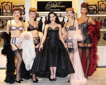 Dita Von Teese是世界上最会穿内衣的女人之一,她以自己的收藏为灵感,给Bloomingdale设计了一个内衣系列,这组内衣也在近日曝光,在Dita最新的一次亮相中不难看出,她对蕾丝还是如此痴迷,在追求性感诱惑的程度上更加进击,内衣风格也更加“情趣”化,让人看后简直欲罢不能。