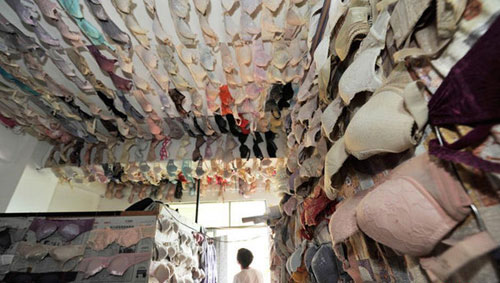 4月21日,海南省三亚市崖城镇的陈清祖花费20年时间收集5000余件文胸,在一间不起眼小房间的墙壁上、天花板上挂满了陈清祖收藏的部分女性文胸,而这些令人目不暇接的“藏品”来自全国30多所高校的女生。据了解,陈清祖的梦想是将来打造一间文胸收藏馆,通过展示内衣,提高全社会对女性乳房健康的关注度。