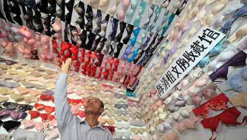 三亚男子收集5000文胸 梦想建文胸收藏馆