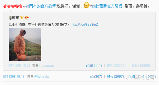 一条韩寒微博下的擦枪走火