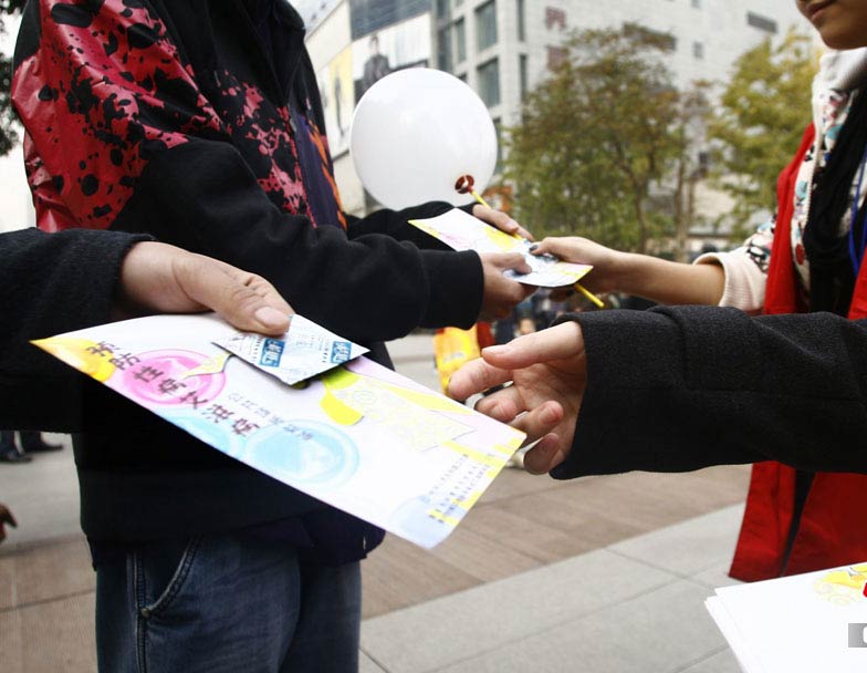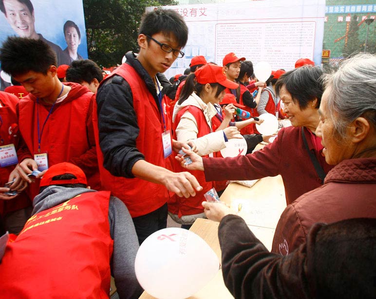 2010年12月1日是第23个“世界艾滋病日”。11月30日下午,重庆绿叶义工协会与市疾控中心一同在江北区观音桥步行街向过往路人派发宣传资料和安全套等计生用品,向公众宣传艾滋病防治知识。