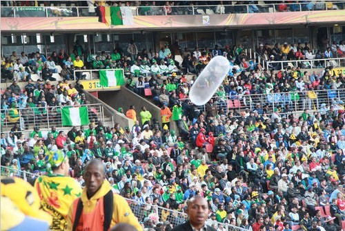 记者了解到,在球场每个看台的厕所内都有免费领取的避孕套。不知是哪位球迷一时兴起做了这个善意的恶作剧。就在南非世界杯开赛之前就有报道,世界各地妓女已经启程奔赴南非“淘金”,而南非又是一个艾滋病的高危国家,在南非600兰特(约合540元人民币)就可以轻松找到妓女。从这可以看出,南非政府对于性的态度以及南非政府在世界杯期间把预防艾滋病做到了球场。