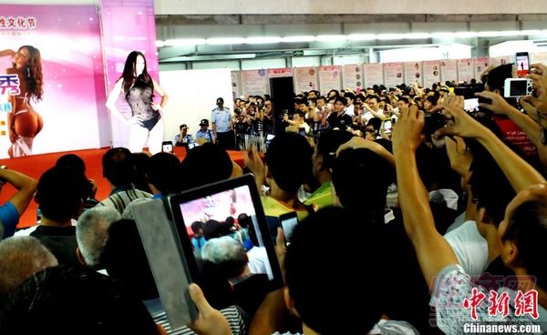 性感是性文化节一大特色。在开幕式上,舞台上的一些礼仪小姐穿的都是布料非常少的性感内衣。与往年一样,展馆内最热辣的节目就是模特内衣秀。在等了1个多小时后,内衣秀终于开始了。