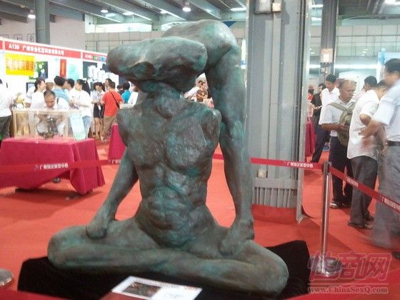另外,一些性感内衣图片光碟等仍然受到中老年观众的热捧。今年,除了巨大的阳具雕塑外,还增加了另外一个也是表现硕大阳具的大型雕塑,引来不少观众与这两个雕塑合影留念。