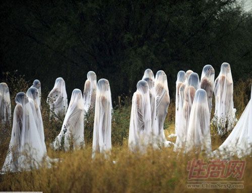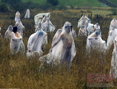 墨西哥裸体志愿者身披薄纱秀行为艺术