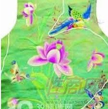 肚兜:也称“兜肚”以正方或菱形的衣片,有素色和刺绣纹样之分,贴身护在胸乳腹部位,有束带套于后颈,左右两角装有绳带,系于后背,还有有袋无袋之分,袋中通常装有姜桂及麝香等药物,用作治腹部冷痛虚寒。