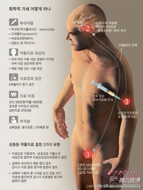 韩国执行化学阉割 韩国媒体5月23日报 道,韩国法务部方面22日表示,对有四次强奸女童前科的朴某下令进行性冲动药物治疗。"化学阉割"又称药物去势,是一种药物控制法,用注射或服用荷尔蒙抑制性冲动,但不会使人丧性能力。朴某出狱后将戴上脚环追踪位置。 看到一条新闻 韩国首次对娈童犯执行化学阉割杀 对强奸犯也该这么办!