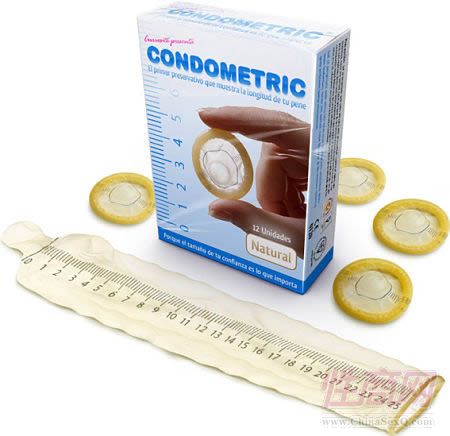 带标尺的安全套Condometric 这又是安全套厂商的一个小小创意,在原有的安全套上印制上了标尺刻度。很多男性非常在意自己那玩意儿的长度,而如今有了Condometric 安全套,可以把那个东东的长度量化。当然一定会有一部分人愿意用Condometric ,因为他们会认为做为男人值得炫耀一下,而也会有一部分人唯恐避之不急,因为Condometric 会打击他们的自信心。