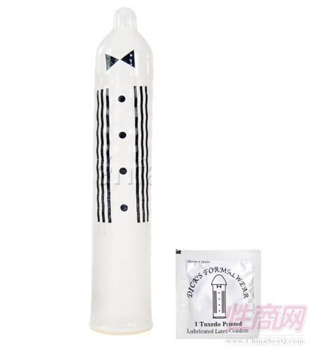 带标尺的安全套Condometric 这又是安全套厂商的一个小小创意,在原有的安全套上印制上了标尺刻度。很多男性非常在意自己那玩意儿的长度,而如今有了Condometric 安全套,可以把那个东东的长度量化。当然一定会有一部分人愿意用Condometric ,因为他们会认为做为男人值得炫耀一下,而也会有一部分人唯恐避之不急,因为Condometric 会打击他们的自信心。 2、燕尾服安全套当你去一个正式场合的时候,一般都会穿正式的服装,那么为什么不让你带的安全套也如衣服般正式和庄重呢?这款安全套完全就是安全
