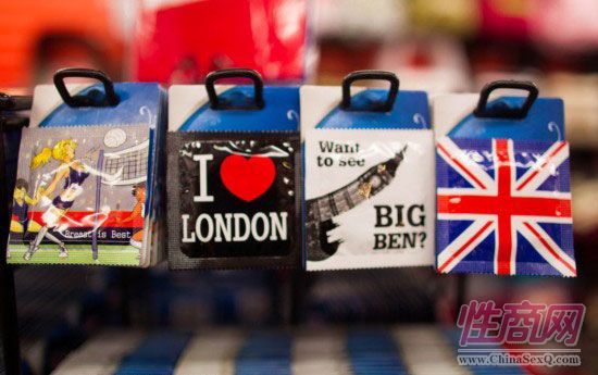 2012年8月5日,伦敦牛津街,一家当地奥运商品店里售卖着伦敦旅游推广版本的避孕套。