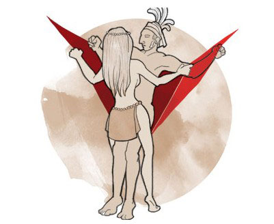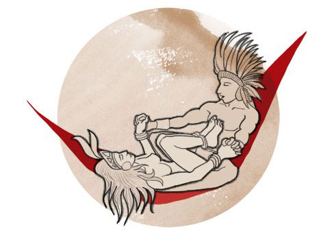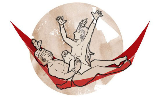 这种“狗”式和我们惯常意义上的“狗”式不同,不过想象一下两只狗在刚刚见面的时候有互闻互舔的习惯就会明白玛雅人对“狗”式的理解更像是69 式在吊床上的延伸版(难道更适用于初相见的男女?)。男性平躺于吊床中,双腿自然分开,与女方反向抱对,女方的膝盖要立于吊床上,因为无法找到支点,所以会更无安全感地抱住男方,臀部舒服地在男伴上“安顿”好。不消片刻,彼此将共同抵达性爱的巅峰。与“从不谈性”的中国古代士大夫阶层不同,玛雅民族从古至今对性一直有着一种集体认同的开放态度。性不仅可以被谈及,学会足够棒的做爱技巧还是衡量评判一个人是否“好情人”的标准,每个印加人都以自己精通“爱的技巧”为荣。