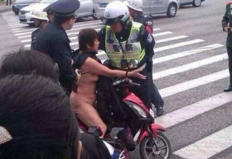 2013年11月12日,上海青浦区外青松公路公园路路口,一女子骑电瓶车违章,被警察拦下,女子当街撒泼,脱光衣服并将警察的裤子撕破。另据现场网友爆料,女子一直呼喊:“警察打人啦,警察摸女人啊,我还要嫁人啊,叫我怎嘛办啊,我不要活啦”。
