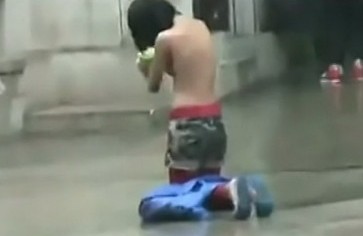 2013年11月中旬,一段女孩街头讨钱的视频在网络引发关注:视频中一名女孩脱掉上衣,裸胸在雨中下跪哭嚎:“我要15块钱,叔叔给我15块钱吃饭吧!“还夸张地仰天哭泣、伸开双手。过了一会见无人理睬,女孩又自行穿上衣服。ps:这…真真假假,难以分清啊。