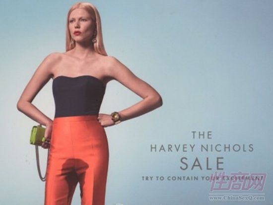 在Harvey Nichols品牌的一则折扣信息广告上,模特身穿橘红色紧身裤、手插腰摆出一副淡定十足的Pose,其实如果缺少了其中一个细节,那这幅广告则再正常不过。但就是模特下身“湿身”照这样一个创意的“点睛”,让很多网友“大惊失色”,惊呼这样的大尺度实在是叫人吃不消,这样的“洋时尚”已经超越了时尚审美底线。