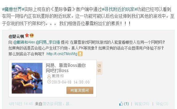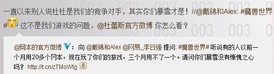 日前,暴雪娱乐大中华区总经理戴锦和接受微访谈时,遭到日本安全套品牌冈本的吐槽,称魔兽世界其实才是他们最大的竞争对手,由于用户的时间都被魔兽世界占用了,使得他们的销量日趋减少,损失非常严重。戴锦和幽默回应:这不是我们游戏的问题,你还是去问杜蕾斯吧。
