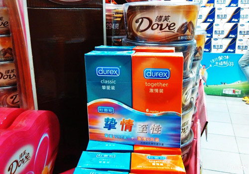 小编走访:避孕套“搭车”德芙巧克力展架促销