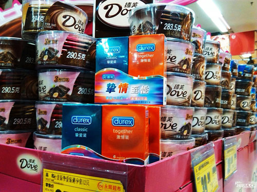 七夕节超市内避孕套“搭车”德芙促销