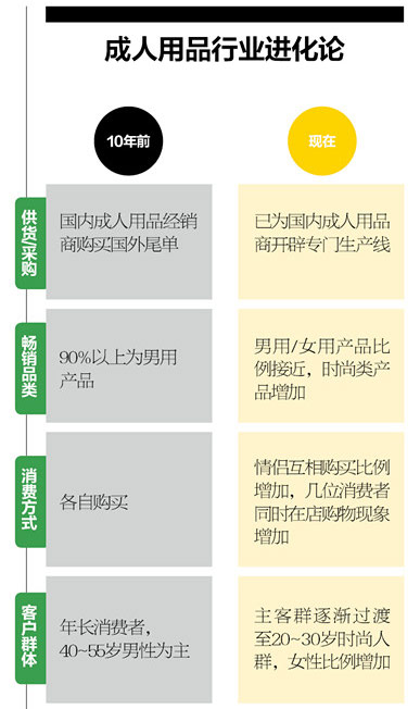“其实成人用品在中国越来越是刚性需求。”虽然有行业先行者早在上世纪90年代就开始从事成人用品的店面销售,但那时候成人用品还不能称之为是一个行业。行业最终的形成与互联网密不可分,绝大多数成人用品消费者都是先光顾过网站,了解了什么是成人用品,之后再到地面店找到商品,有的消费者甚至不需要进行任何交流,就直接付费离开。“中国的成人用品行业有非常显著的特质,先互联网而后地面。”