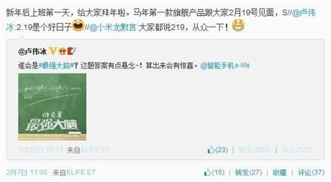 金立自2013年起开始发力互联网渠道,发布了E3、E6、E7等颇受关注的手机。而卢伟冰新近又发布了两条微博,一条称“新年后上班第一天,给大家拜年啦。马年第一款旗舰产品跟大家2月19号见面,S”,其末尾的“S”引人遐想。