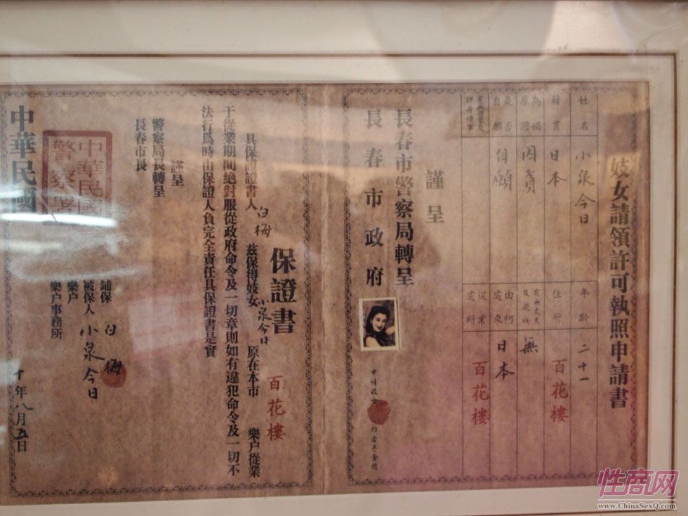 伪满洲警察局发给妓女的执照