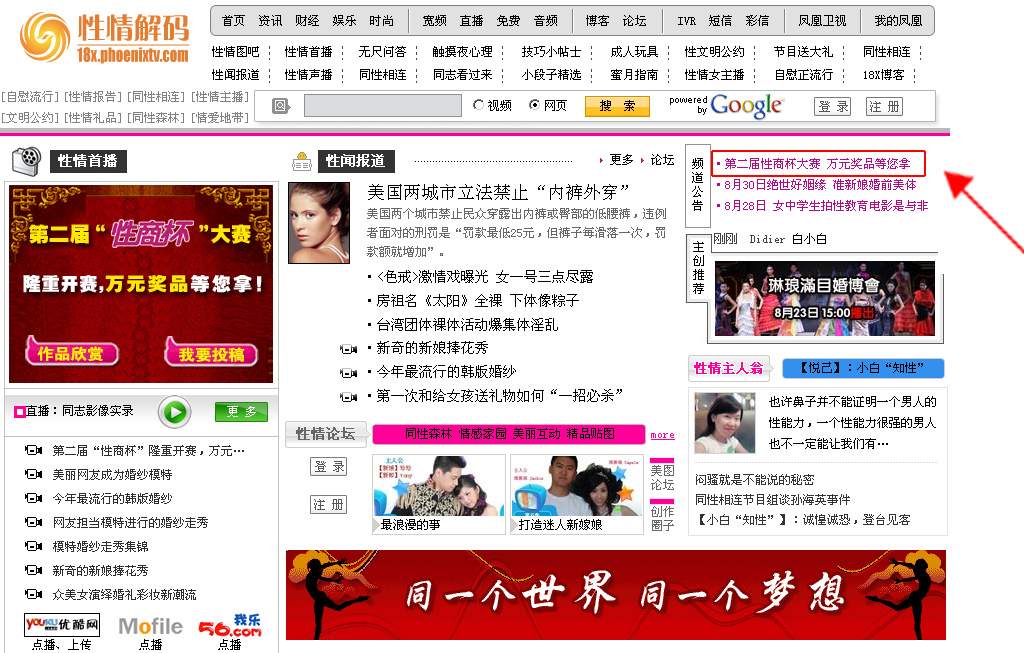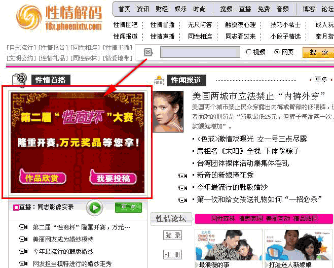 由“性健康领域第一门户网站”性商网与“华人第一娱乐资讯”凤凰卫视、凤凰网联袂举办的第二届“性商杯”性教育公益作品征集大赛正在火热进行之中。作为本届大赛的主办方之一,凤凰网将对本届大赛进行全程报道与推广。