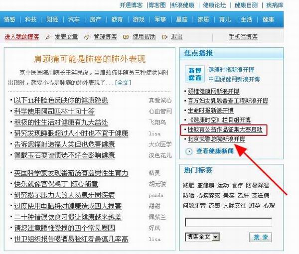 推广2:博客健康首页文字广告(2007年9月4日—2007年9月11日)