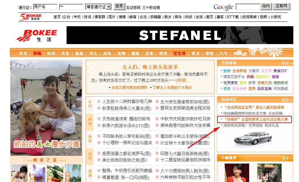 推广2:网站生活频道健康栏目固定图片广告(2007年9月18日—2007年9月25日)