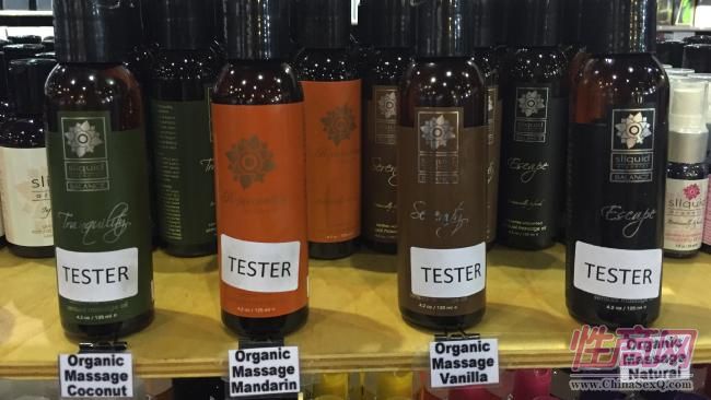 有很多摊位销售有机按摩润滑油,可以想象听着舒缓的音乐下,做普拉提...有机按摩油有不同的类型,称为“静谧”、“火山”...还有不同的颜色和口味。