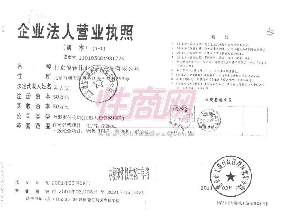 北京盈佳伟业医疗用品有限公司是医用人体润滑剂的专业生产企业。经过近十年的努力,已经发展成为国内外知名的人体润滑剂生产商。其产品在国内占有较大的市场份额,并远销到欧洲、韩国、日本、东南亚和美国,受到顾客的广泛赞誉。 2004年公司被北京市药监局正式批准为医疗器械产品生产企业,并通过国家医疗器械质量管理体系的考核,使内部管理水平提高到一个新的水平。