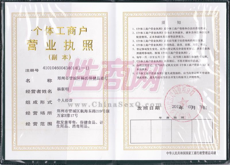 杨氏保健品**郑州**商行有限公司位于中国郑州 成立于2005年8 月18日。是一家集保健品综合批发为一体的大型私营企业,是全国**大的成人用品批发配货商之一。全国各地有安全套情趣内衣代加工厂。产品覆盖安全套,,延时喷剂,男女健慰器,充气娃娃,实体娃娃,情趣内衣等全部成人用品累不。多年来 公司一贯秉承诚信经营 用户至上的经营理念在消费者心中占有了举足轻重的位置。公司愿与新老用户 同心协力 共创辉煌明天。加QQ:1482671595可以索要产品价格表。电话:15838024433 公司简介