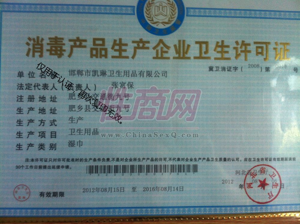 消毒产品生产卫生许可证
