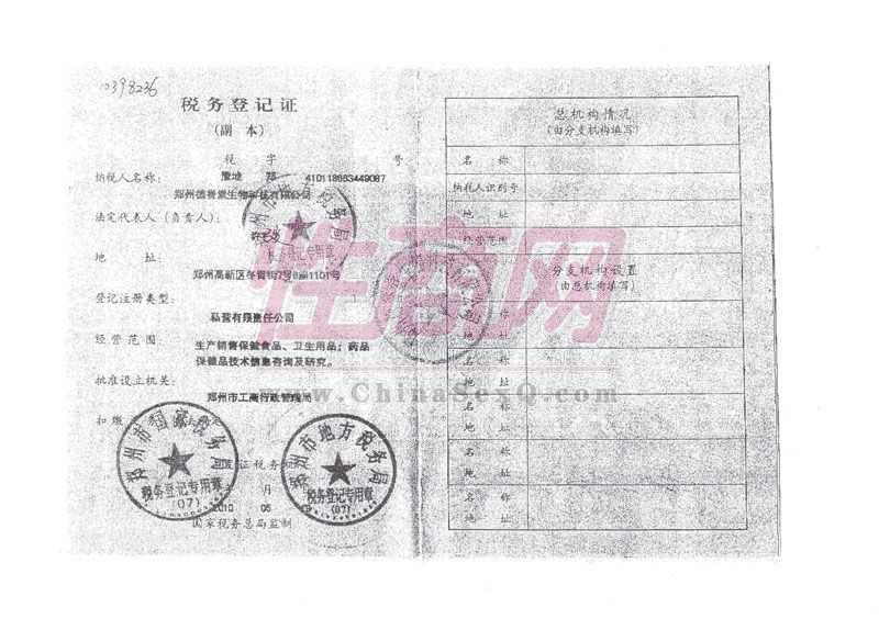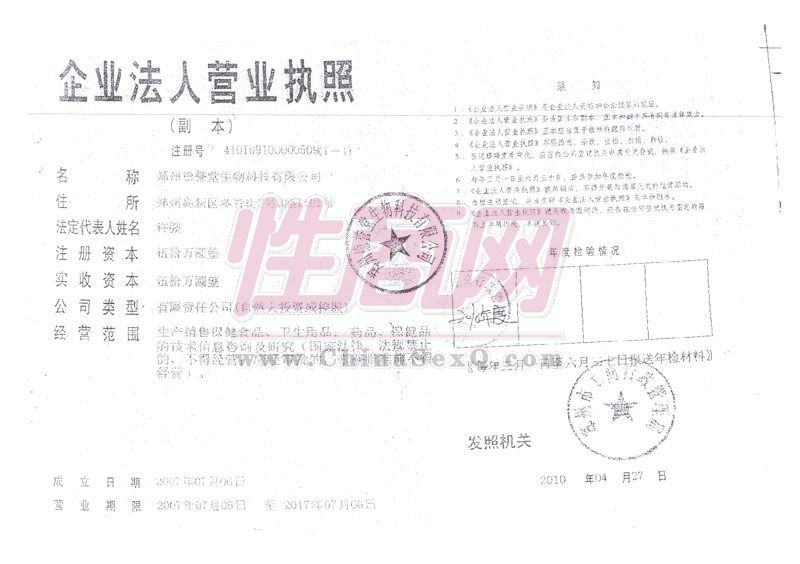 郑州德誉堂生物科技有限公司成立于2007年,注册资本50万元,生产销售保健食品,卫生用品,药品,保健品的技术信息咨询及研究,主要品牌有:金爵、金勃印度神油等,一家集生产,研发、销售为—体的男士外用产品的专业机构。- 公司名称:郑州德誉堂生物科技有限公司