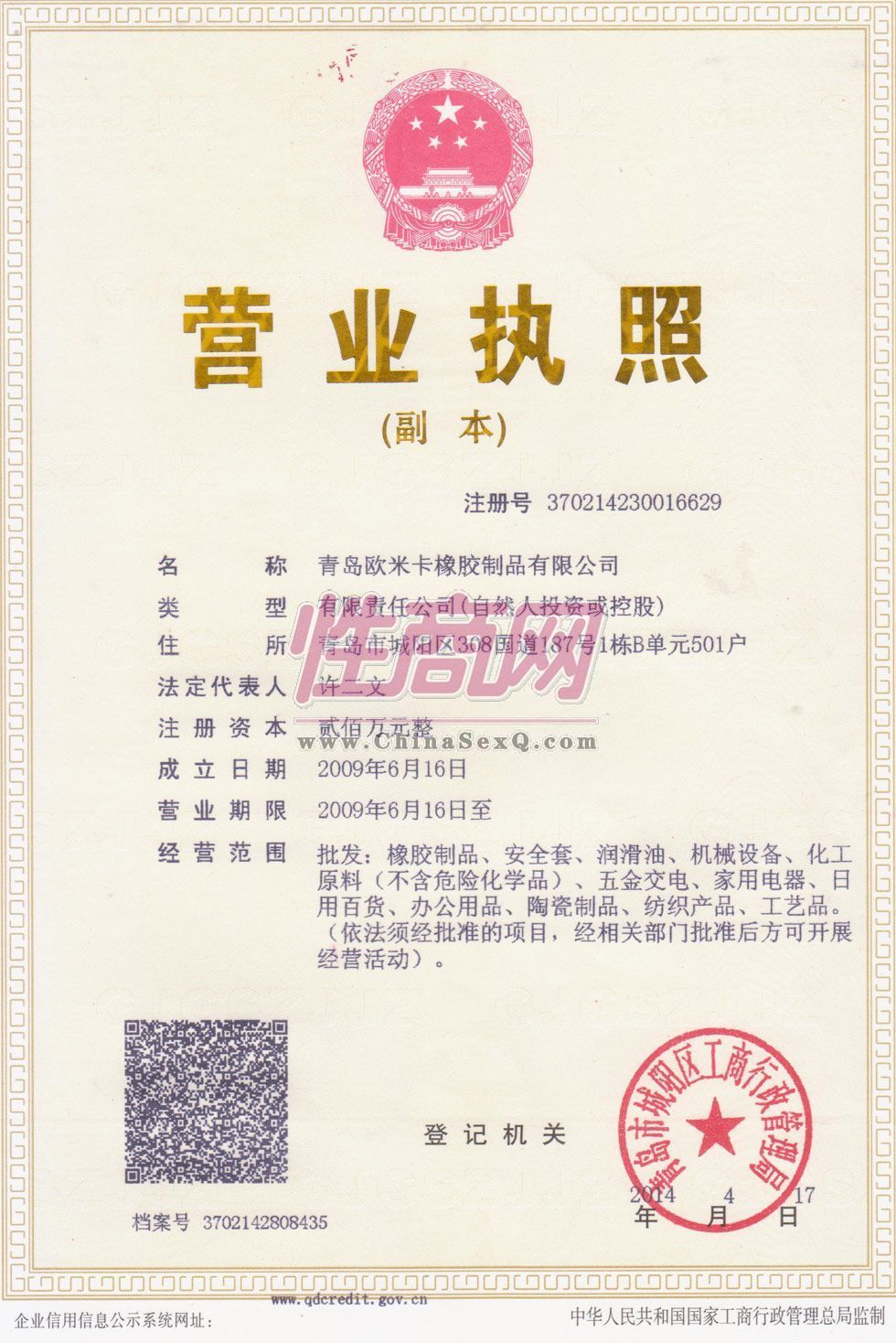 - 公司资质:工商营业执照