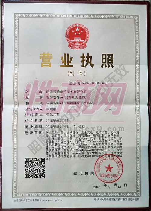 - 公司资质:工商营业执照
