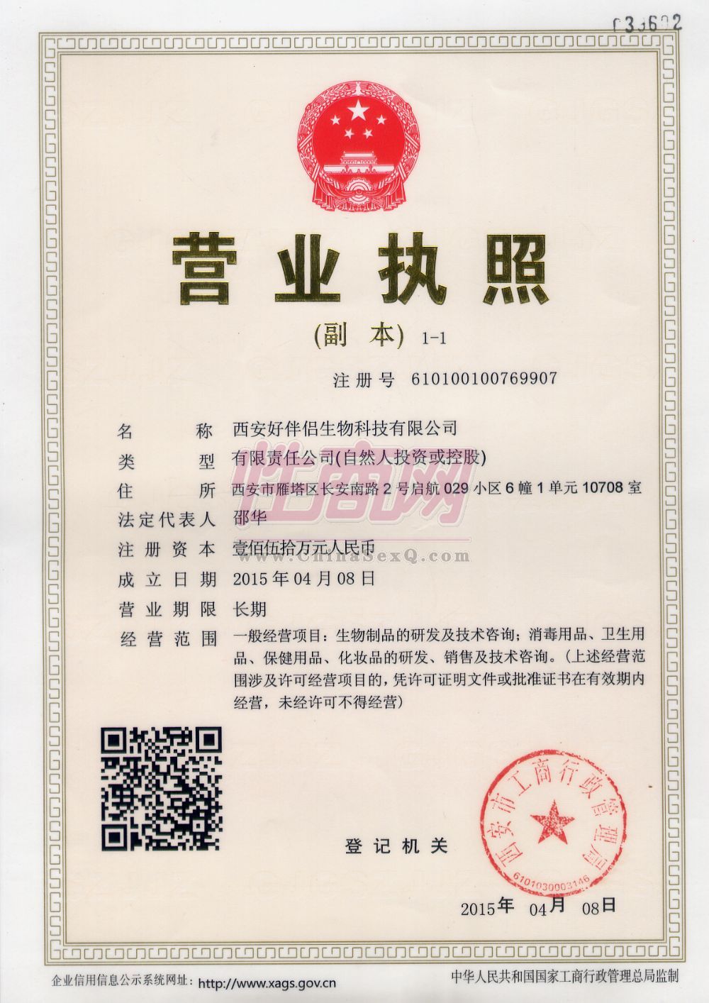 西安好伴侣生物科技有限公司成立于2015年4月,坐落于文化底蕴丰厚、人文风景美丽的十三朝古都中国西安,公司集研发、生产、销售为一体,下辖产品研发部、市场调研部、客户服务部、产品招商部等职能部门,是一家新兴的高科技生物产品企业。好伴侣生物科技有限公司致力于成人私护领域,聘用多名行业顾问,产品研发精英、性学**构建成企业智囊团,站在市场前沿专注研发成人延时、助情系列产品,公司秉承“专业品质、诚信规范”的核心文化,以“重质量保证、用产品说话”的经营理念,本着“为民族创建好品牌,为客户研发好产品,为员工打造好企业”的使命目标,科学管理,规范经营。