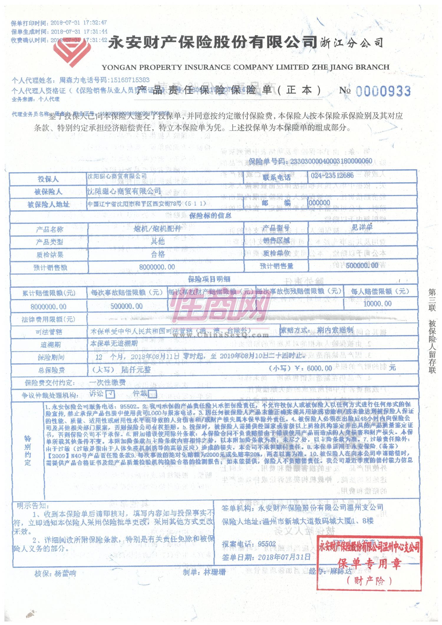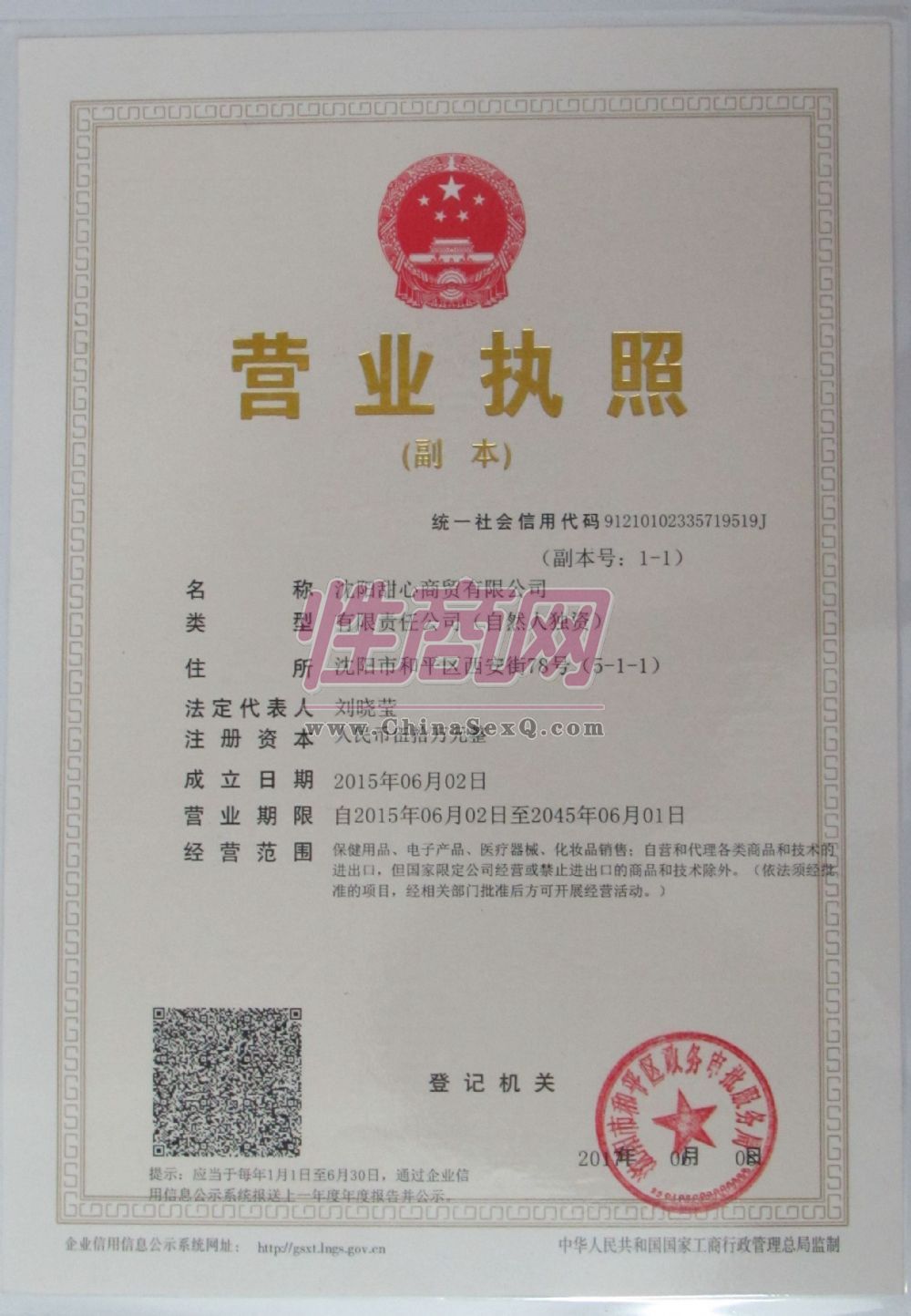公司位于中国辽宁省沈阳市保健品批发市场内,是一家专业批发炮机及炮机相关配件产品。公司经营旗下自有注册商标SWEETHIN/甜欣品牌系列商品。并且拥有商品多项专利及商品认证,经营品牌避孕套,保健按摩润滑油、按摩棒等情趣用品,产品的经销批发 。畅销国内外消费者市场。产品在消费者当中享有较高的地位售前售后服务至上,本店与多家连锁店。门市店零售商和厂家.代理商建立了长期稳定的合作关系。 性保健品种齐全、价格合理。 实力雄厚,重信用、守合同、保证产品质量,以多品种经营特色和薄利多销的原则,赢得了广大客户的信任。本店同各货站.快递货运部逐渐建立了良好的合作关系,具有优势的国内运输价格,且己经形成了较为完善的快递货运网络,提供全方位的空运.快递陆运货运"提---运---送"一站式门对门服务,货站可代收货款,运费到付、及异地调货等服务。本店拥有一支素质良好、精干高效的专业快递物流队伍,以客户为核心,以专业的精神为您提供安全、经济、专业的快递物流服务!- 公司名称:沈阳甜心商贸有限公司