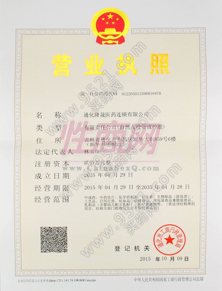9521买药网坐落于中国医药名城“吉林省通化市”,隶属于通化隆晟医药连锁有限公司,是吉林省**由国家食品药品监督管理局批准的合法网上药店,是东三省地区医药电子商务科技创新知名企业。我们将秉承“以诚信求发展、以客户为中心”的理念,致力于提高全国人民用药水平、从而降低用药费用而努力!我们承诺所有的药品:货--真,价--低!我们相信,健康是从呵护自己开始,我们通过建立药嘱、药物咨询、疾病用药问询等服务,我们会与您一起关注健康,您的用药健康与安全就是全体9521人的使命。