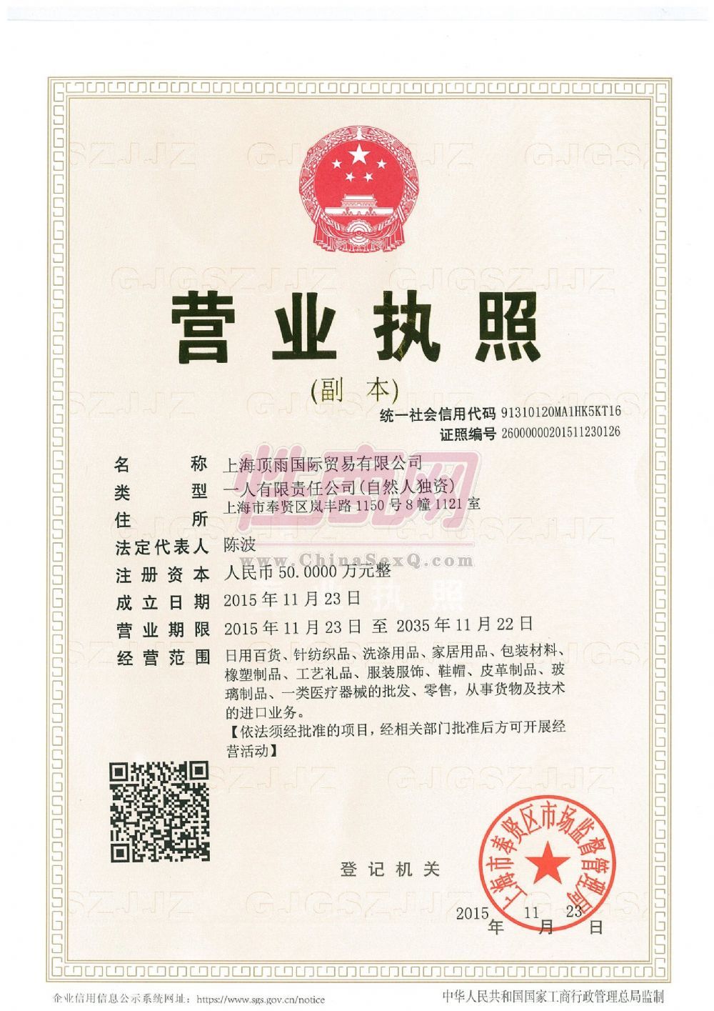 - 公司资质:工商营业执照