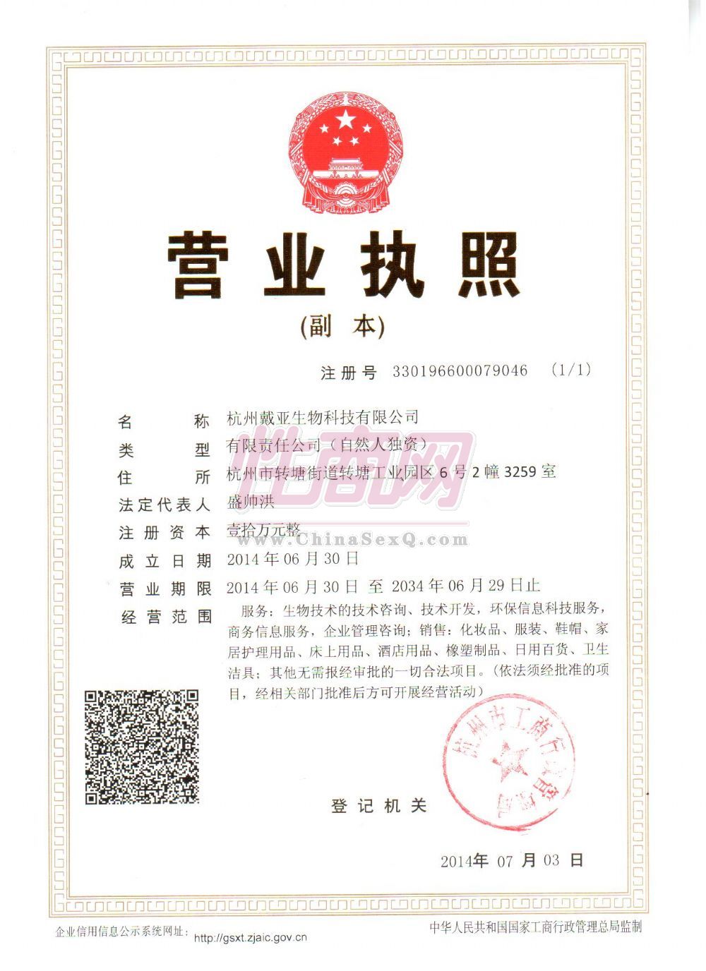 杭州戴亚生物科技有限公司是一家集产品研发和销售一体的公司,公司主营成人用品。公司经过多年发展从原先的单一出口外贸发展到国内自主品牌产品。 公司简介