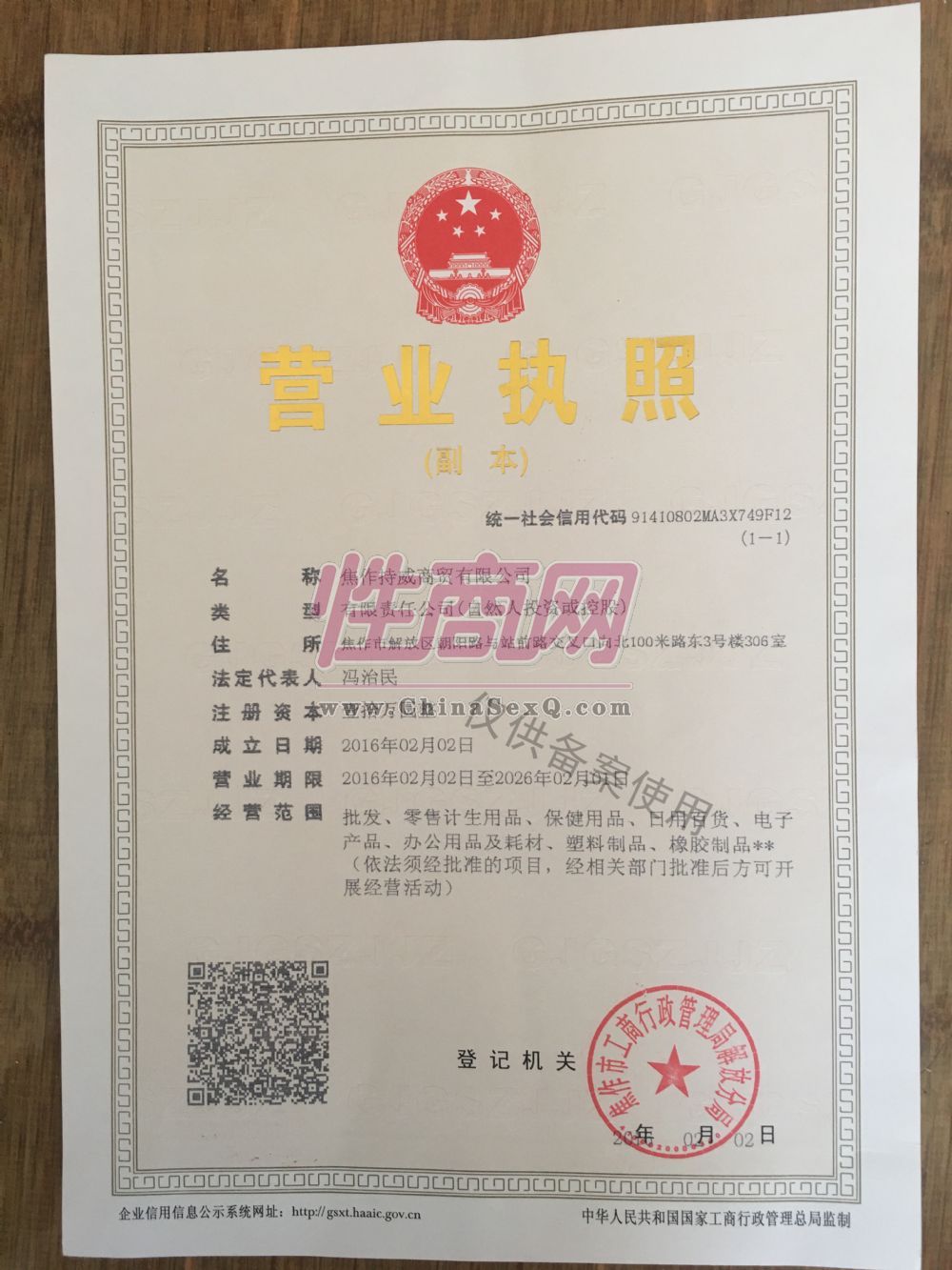 - 公司资质:工商营业执照