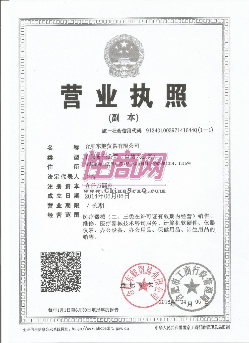 - 公司资质:工商营业执照
