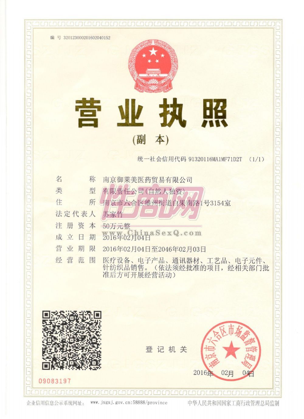 - 公司资质:工商营业执照