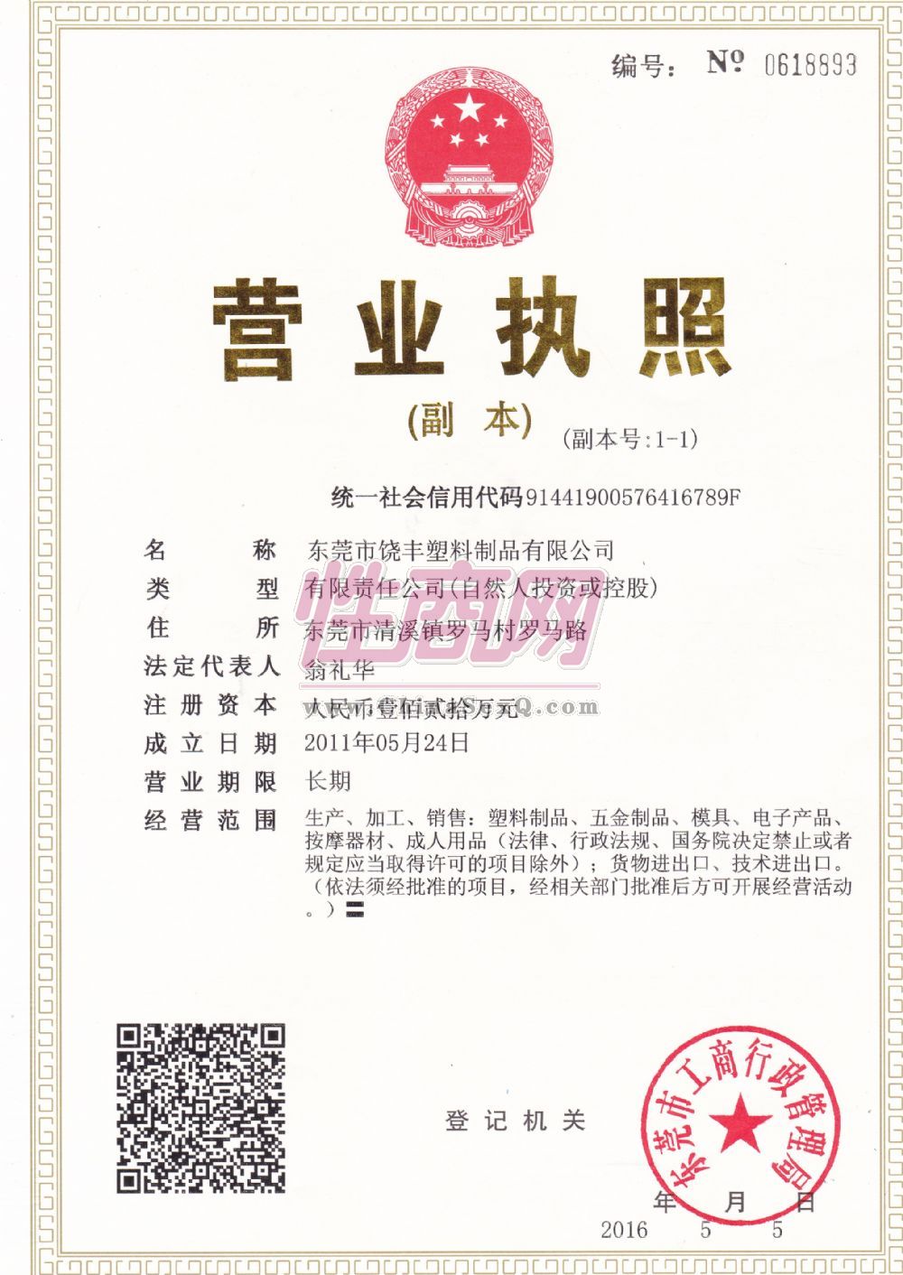 - 公司资质:工商营业执照